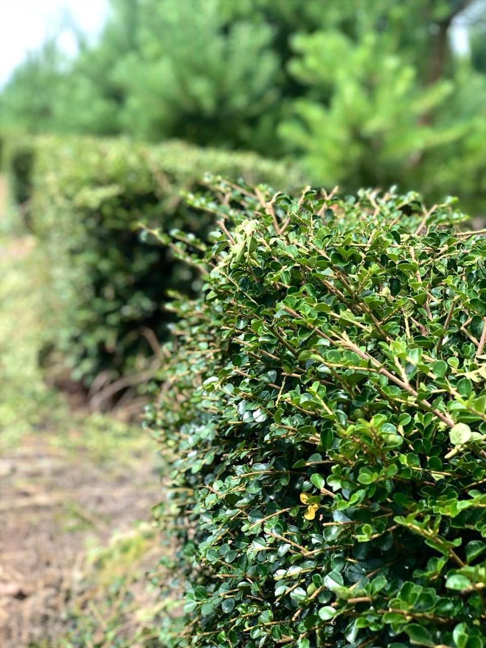 Frunziș: frunze mici, dense, de culoare verde închis, lucioase