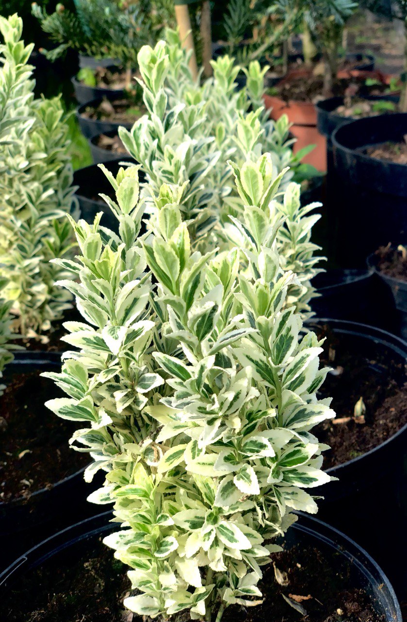Euonymus japonicus ‘White Spire’ este un arbust veșnic verde, foarte apreciat în amenajările moderne datorită formei sale verticale și frunzișului decorativ, bicolor.