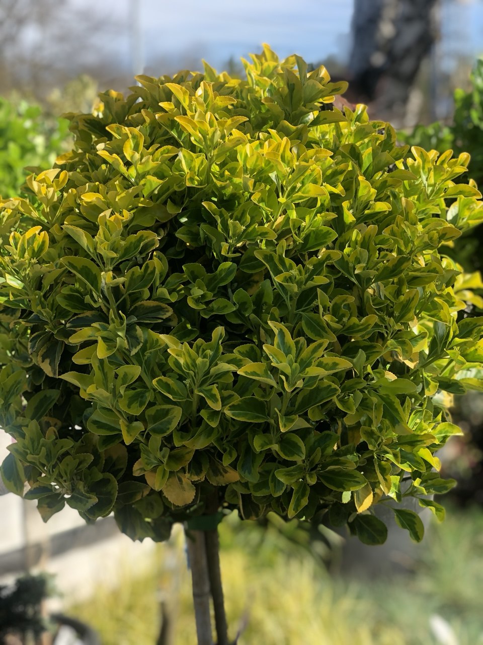 Euonymus japonicus ‘Aurea’ PA este un arbust ornamental veșnic verde, apreciat pentru frunzișul său decorativ, galben-auriu cu margini verzi, care aduce lumină și contrast în grădină pe tot parcursul anului. Forma PA (pe trunchi) îi oferă un aspect elegant, ideal pentru accente decorative.