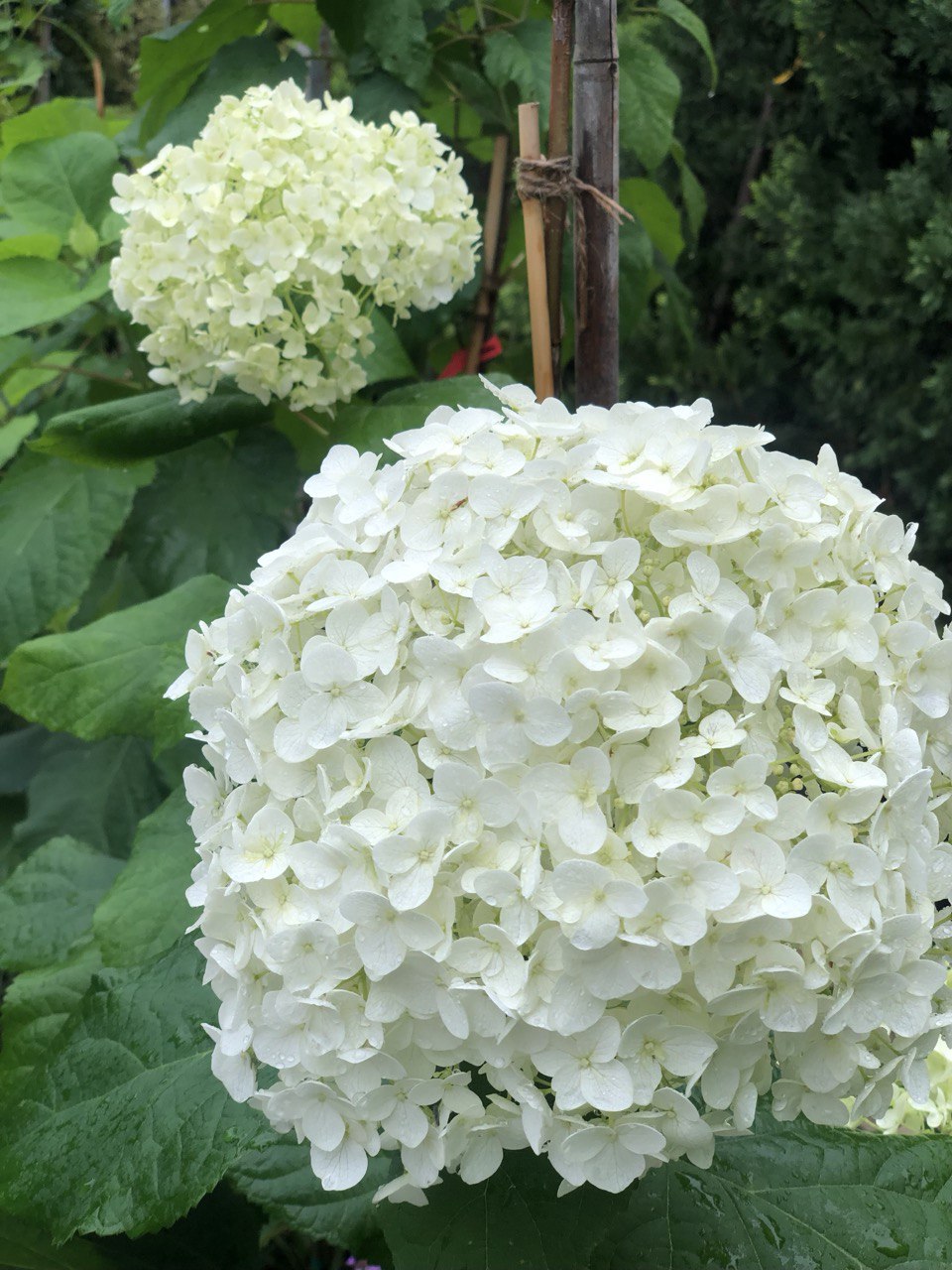 Hydrangea arborescens ‘Annabelle’ este un arbust ornamental foarte apreciat pentru florile sale mari, globuloase, de culoare alb-crem, extrem de decorative.