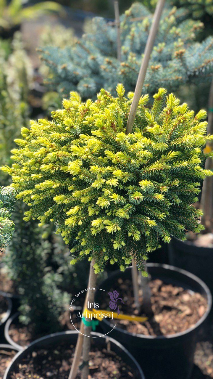 Picea glauca ‘Cecilia’ pe trunchi este un conifer ornamental deosebit, apreciat pentru forma sa compactă și coroana densă, regulată, altoită pe tulpină, ideal pentru grădini decorative și spații elegante.