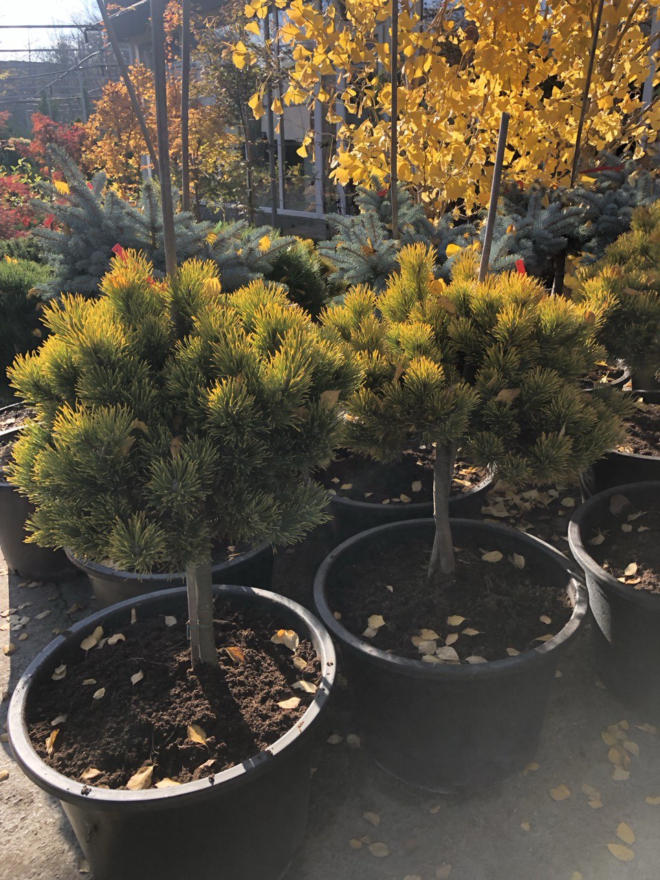 Pinus mugo ‘Wintergold’ PA (pe altoi / pe trunchi) este o varietate decorativă de pin pitic, foarte apreciată pentru culoarea aurie intensă din sezonul rece.